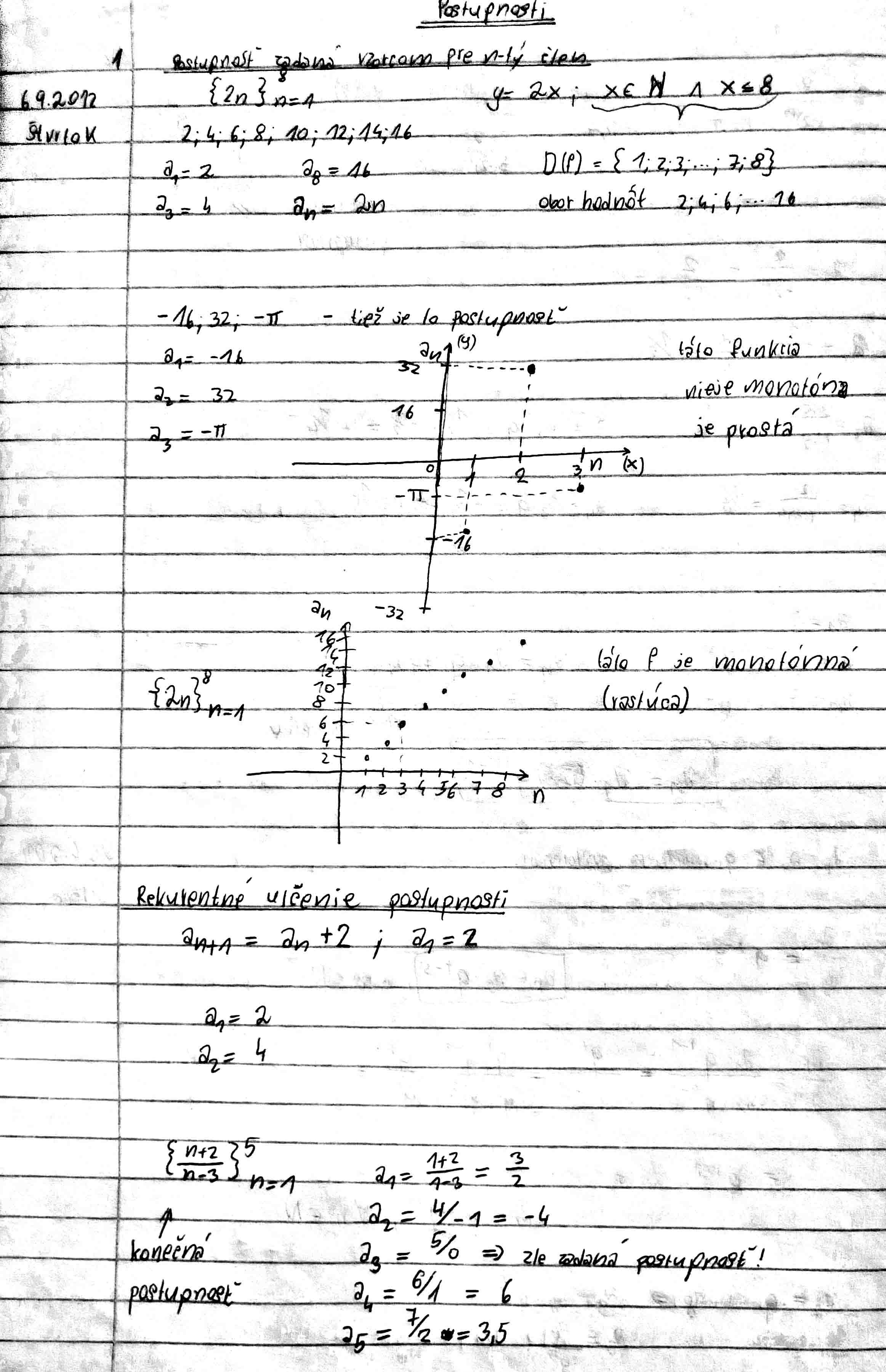 zadané pre n-tý člen, rekurentné určenie postupnosti